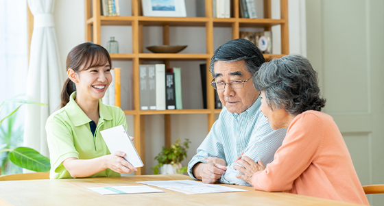 ご自宅で介護を受ける方のため、ケアマネージャーが訪問し、介護保険認定申請を行いケアプランを作成します。